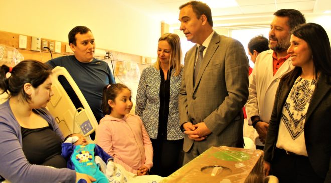 Por su parte, el Director (s) Dr. Claudio Barría Peña, también señaló estar muy contento con la visita al pequeño y su familia. “Junto a las autoridades le entregamos el Ajuar que contempla el programa Chile Crece Contigo, algo que se realiza desde el primer gobierno de la Presidenta Bachelet y que ahora continúa a través del tiempo como una política del sistema de protección social. Este es un regalo y sobre todo un derecho que tienen los niños de crecer en lugar donde el Estado le asegure todos sus derechos”.