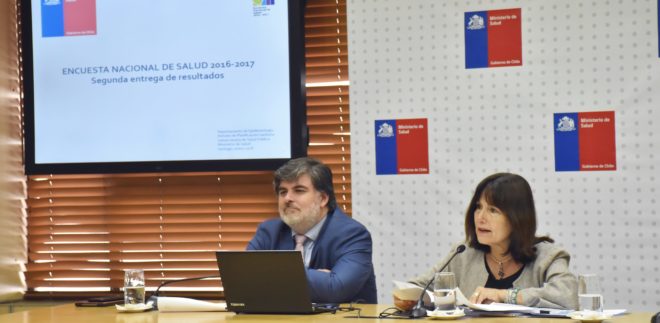 La Ministra de Salud, Carmen Castillo, junto al Subsecretario de Salud Pública, Jaime Burrows, dieron a conocer los segundos resultados de la Tercera Encuesta Nacional de Salud (ENS) 2017, la más importante y completa que se ha realizado a la fecha.