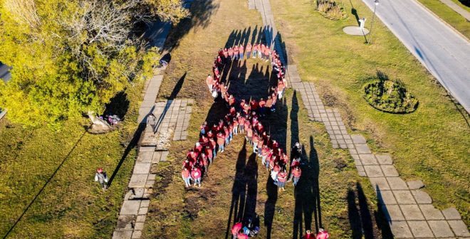 Fue así como más de 80 jóvenes de carreras de la salud de la región, sumados a diversas autoridades y representantes de la comunidad formaron el lazo humano gigante más austral del país. Este lazo, fue captado en fotos aéreas, como símbolo internacional de apoyo a la lucha contra el VIH/Sida y solidarizar con las personas que viven con el virus.