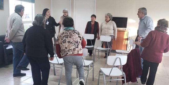 Con pleno éxito profesionales del Hospital Comunitario Dr. Marco Chamorro de Porvenir, han realizado taller funcional para adultos mayores en dependencias del recinto casas tuteladas de la comuna fueguina.