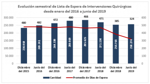En cuanto a las intervenciones quirúrgicas electivas, se encuentran pendientes de resolver a la misma fecha 258.274, en 233.168 personas. Se disminuyó los días de espera por la atención en 61 días, con respecto a diciembre 2018 y en 147 días en relación a junio 2018.