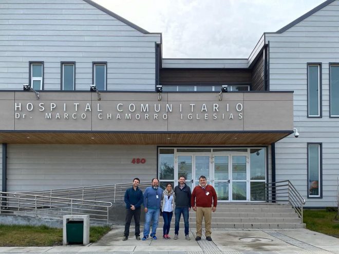 En la fotografía de derecha a izquierda, Dr. Ricardo Castro, Director Hospital de Porvenir, Dr. Mario Cabezón, Dra. Daniela Figueroa, TM Andrés Oval, Dr. Miguel Pinochet, Subdirector (s) Médico Hospital de Porvenir